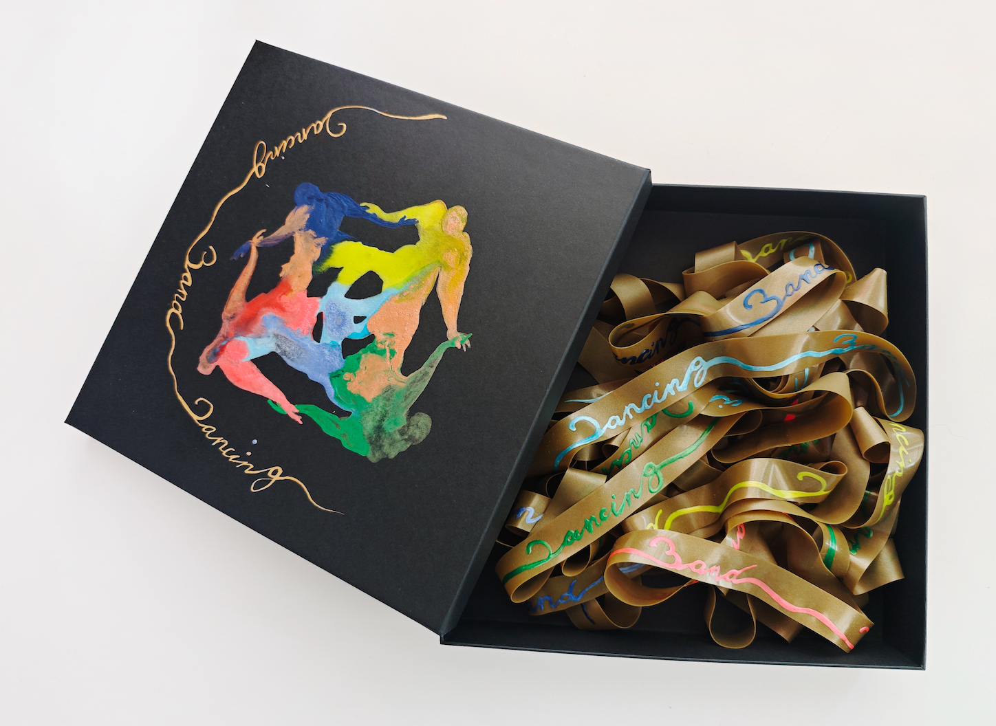 I will make a box for you, with my original artwork, containing 24 hand-painted loop elastic bands, specially designed for DaNCING𓂃BaND practice and facilitation you’ll take with you as part of the course.